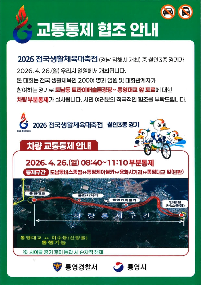 2026년 전국생활체육대축전 철인3종 경기 관련 교통통제 협조 안내