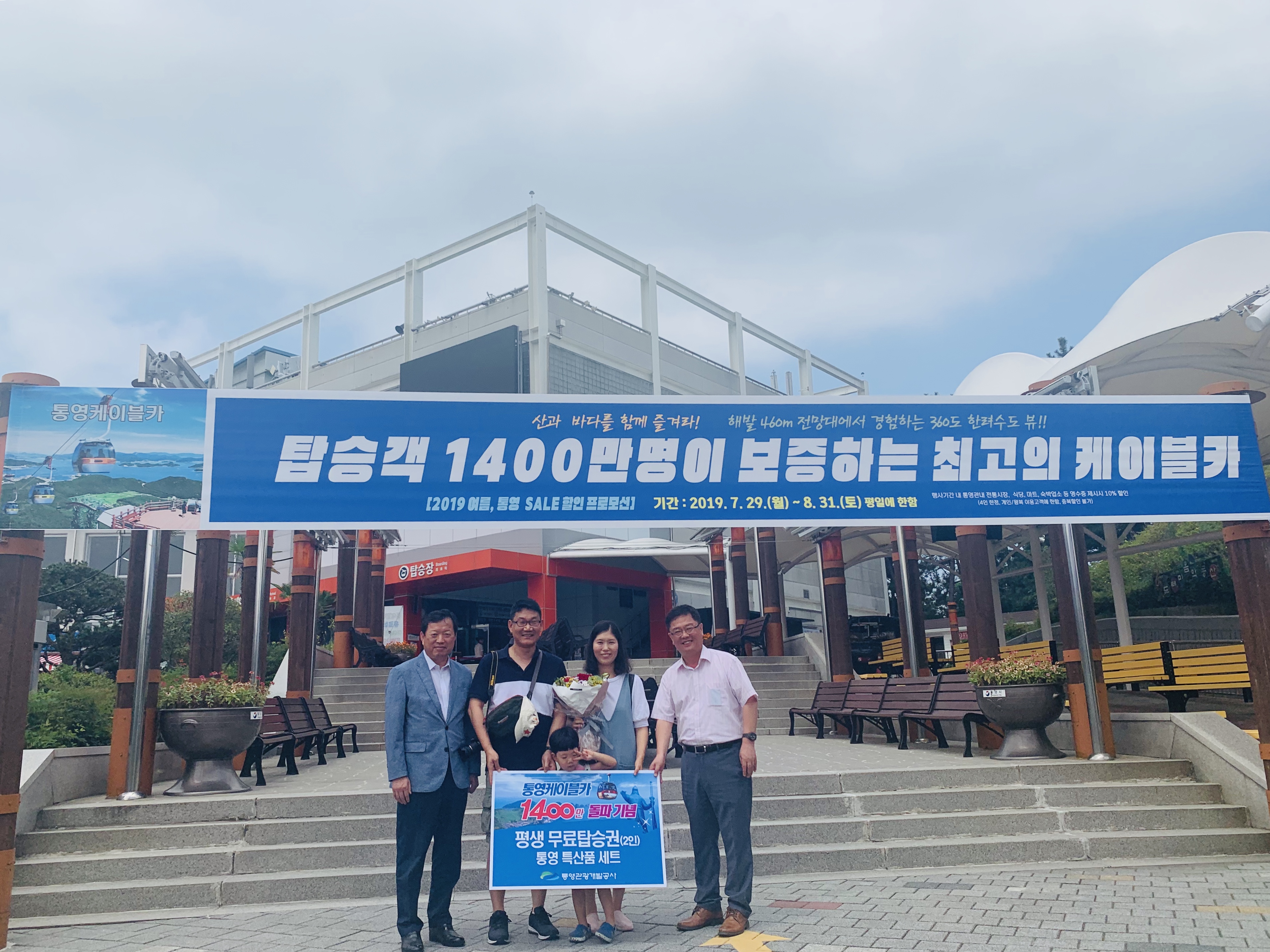 1400만번째의 주인공은 경기도 화성에서 여름 휴가차 남편, 아들과 함께 통영에 가족여행을 온 김지은씨이며 행운의 주인공에게는 통영케이블카 평생 무료 이용권(본인포함 2인)과 통영특산물 세트(멸치, 장어, 굴, 멍게, 동백바디세트), 꽃다발을 부상으로 증정했다. 아쉽게도 1400만번째를 놓친 고객 4명에게는 케이블카 탑승권 2매와 통영특산물(멸치세트)를 부상으로 증정했다.