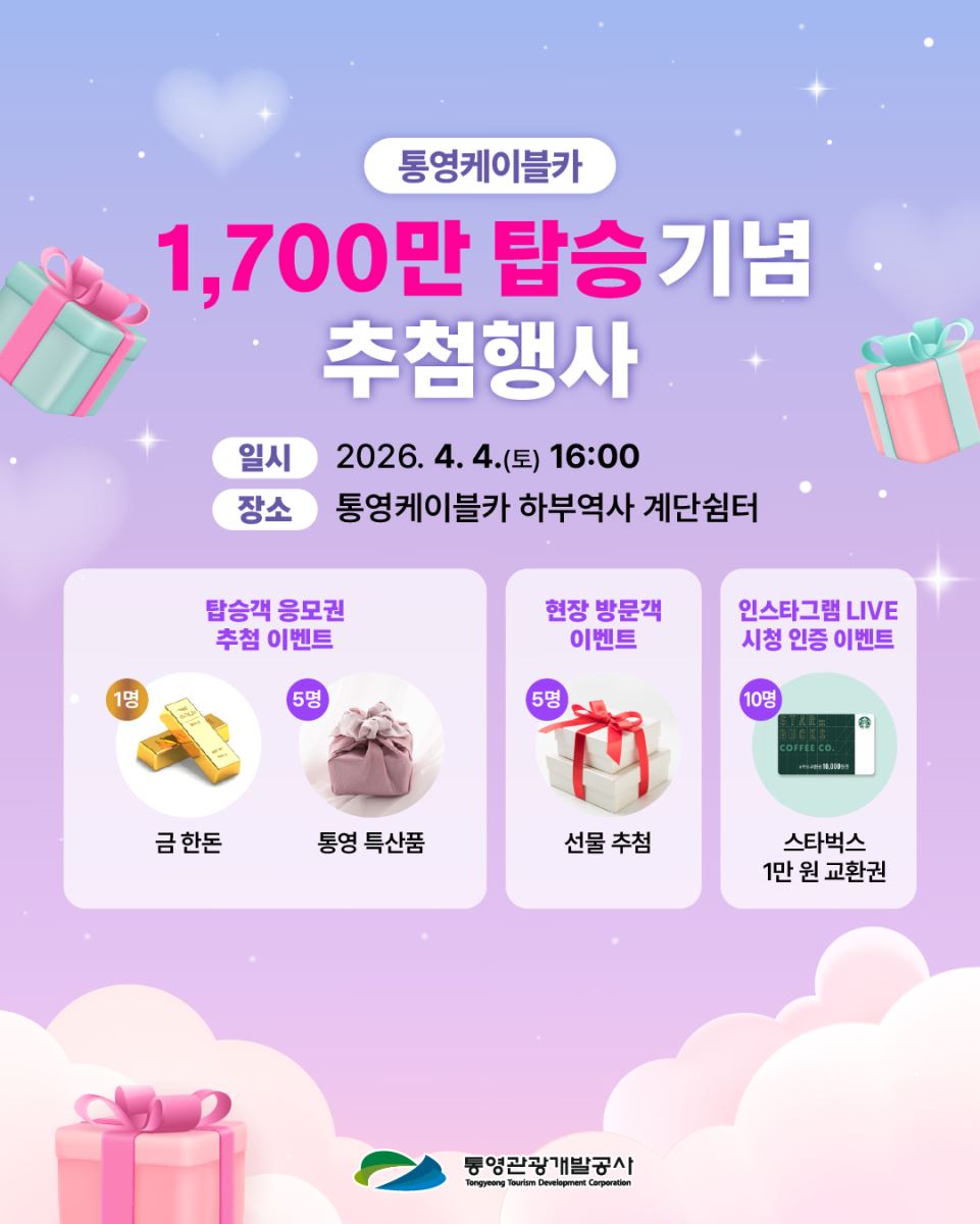 - 참여방법 : 행사일 통영케이블카 공식 인스타그램 라이브 시청